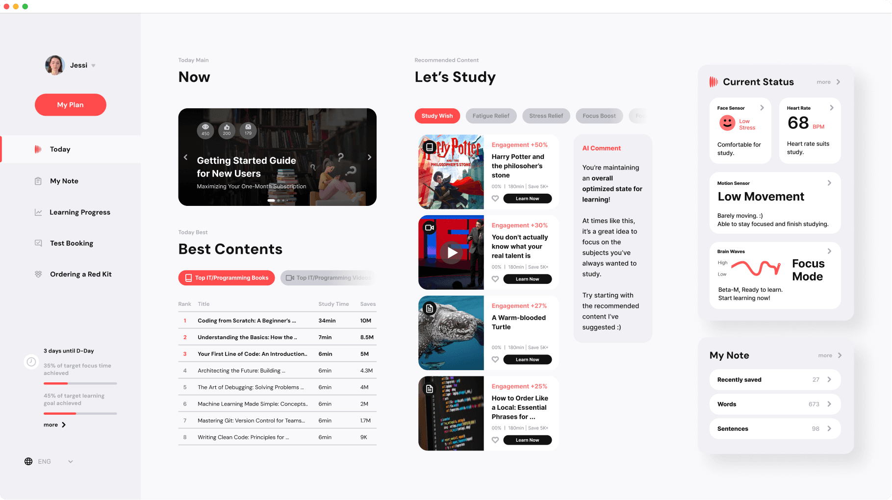 Redbio removes the guesswork from studying by analyzing your stress and heart rate before you start. It automatically recommends the most suitable content format—whether it’s a light video or an in-depth article—ensuring you always learn in your optimal zone without burnout.