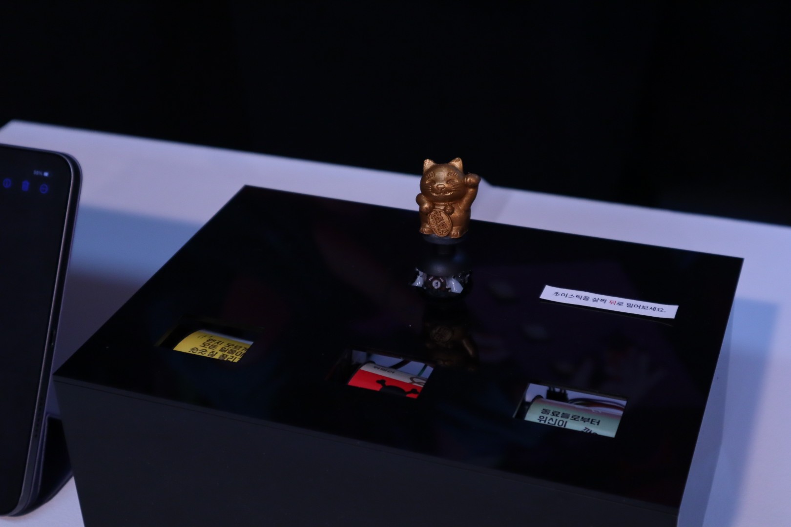 Powered by Arduino-based sensing and control, the box detects the user’s input and triggers a predictable outcome. The system stays intentionally minimal—so the experience feels magical, not technical.